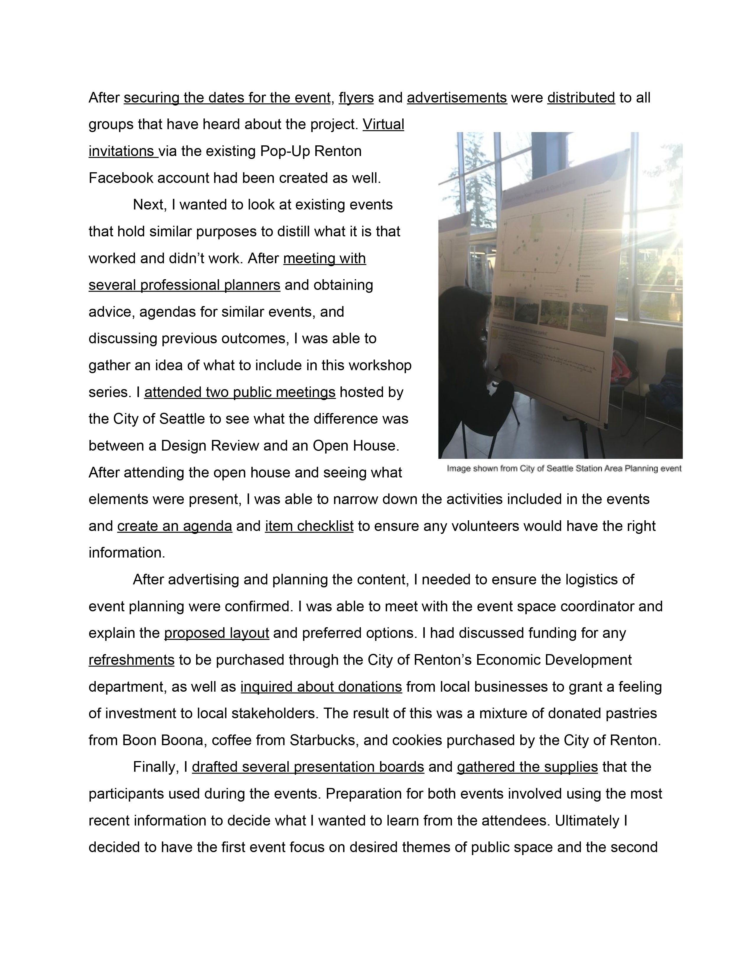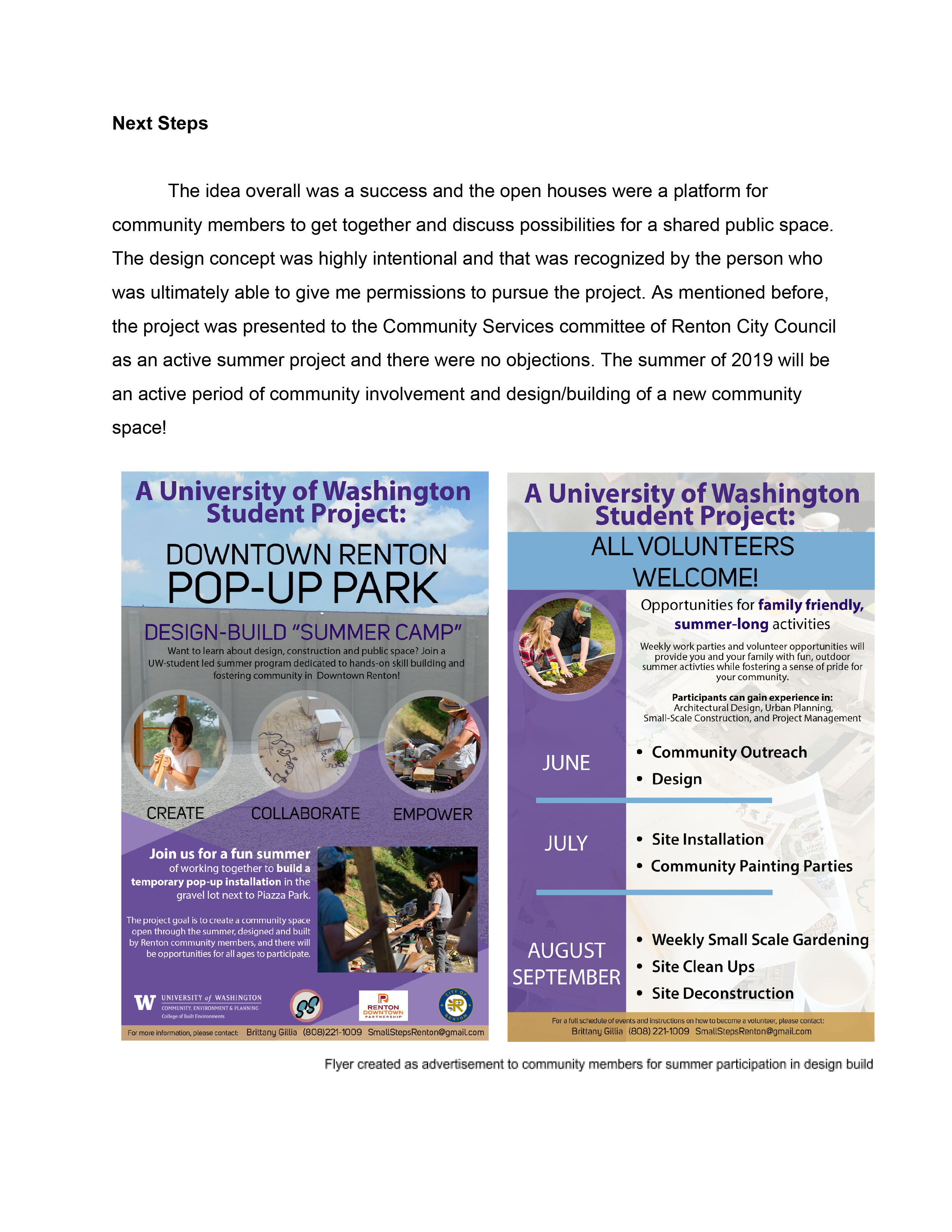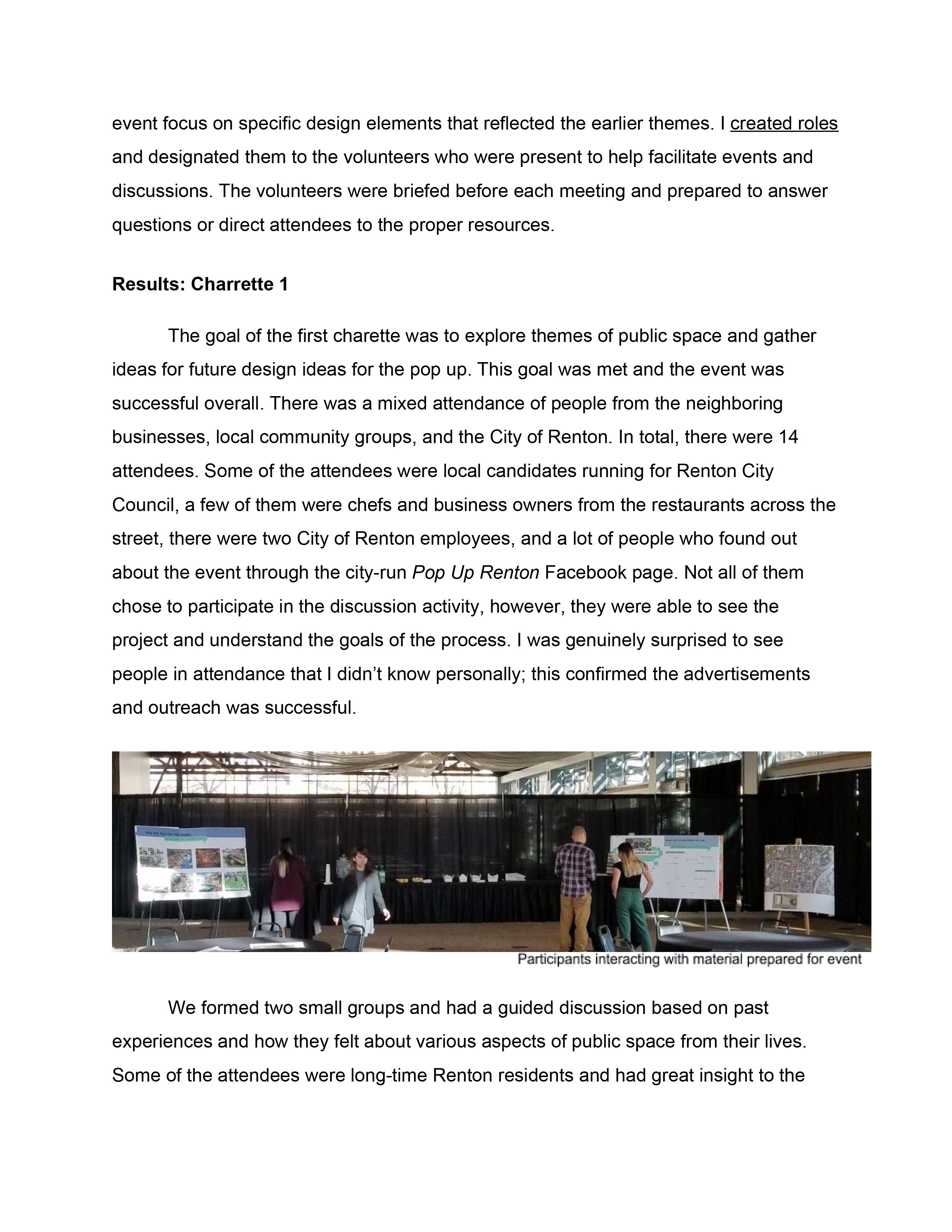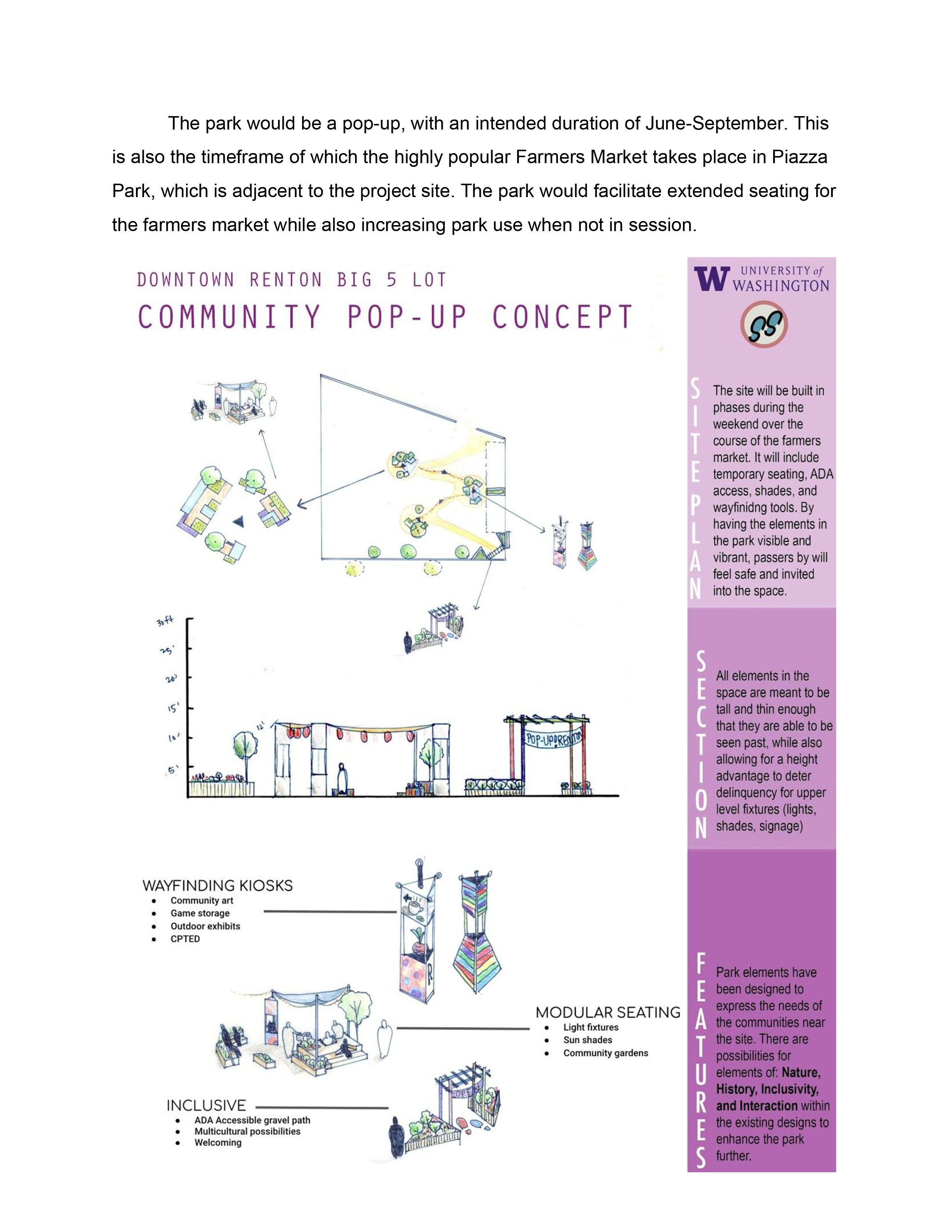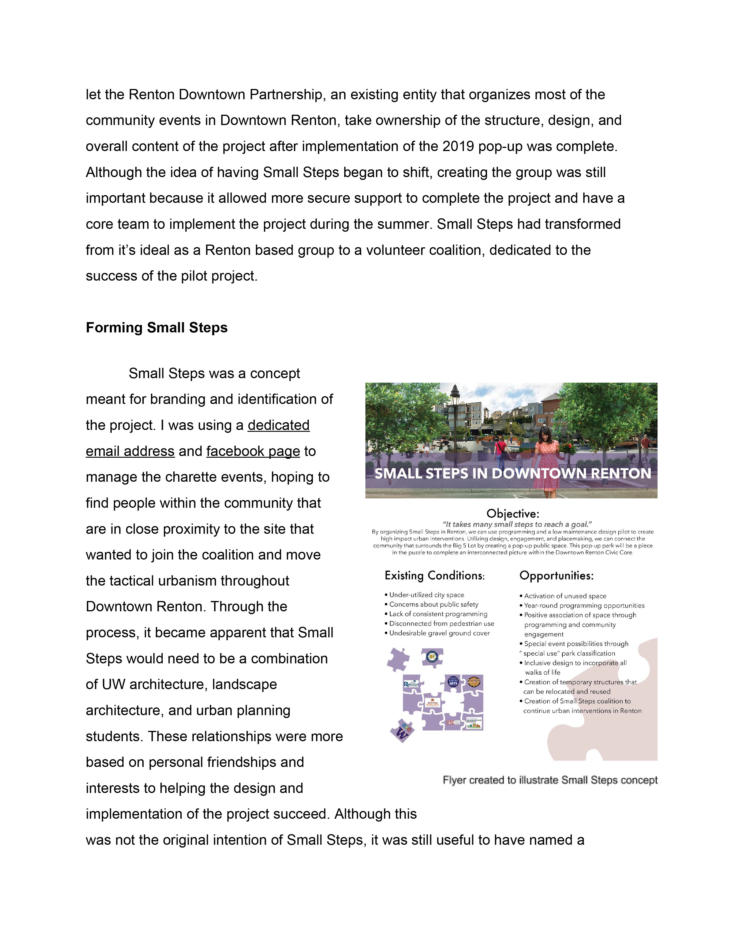 My senior project, Small Steps in Downtown Renton: Informed Design through Community Engagement has been a great step into the world and has taught me many lessons both academically and personally. Below, you will find my senior project write-up that details my methodology and thought process behind the project. To see the presentation materials used during my Senior Project Night presentation, click here.